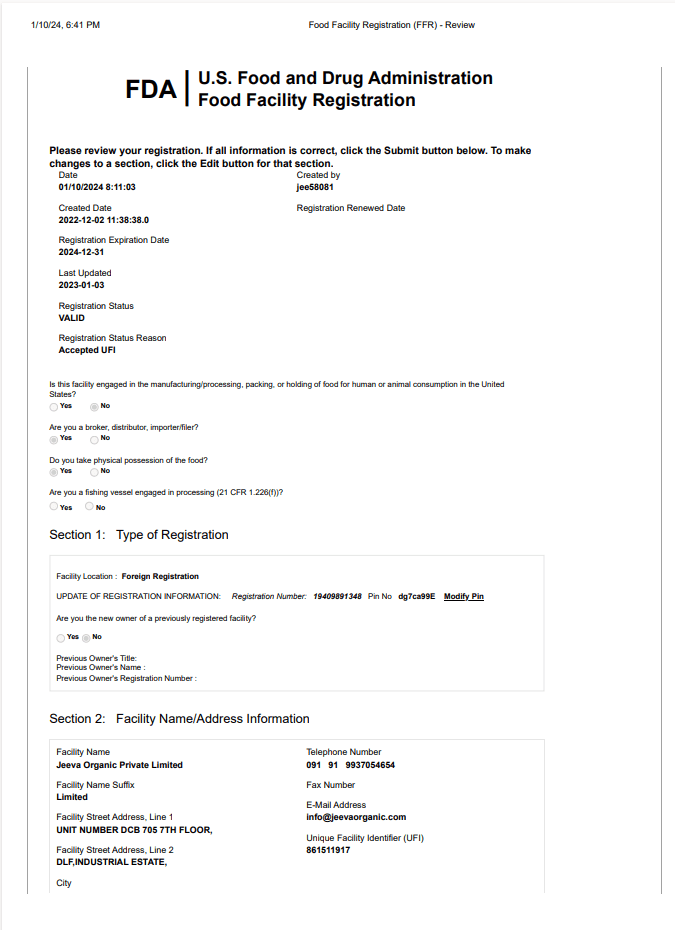 The FDA registration for Jeeva Organic certifies that our facilities and products meet the stringent standards and regulations set by the U.S. Food and Drug Administration. This registration underscores our commitment to compliance with U.S. regulatory requirements, ensuring the safety and quality of our ingredients in the American market.