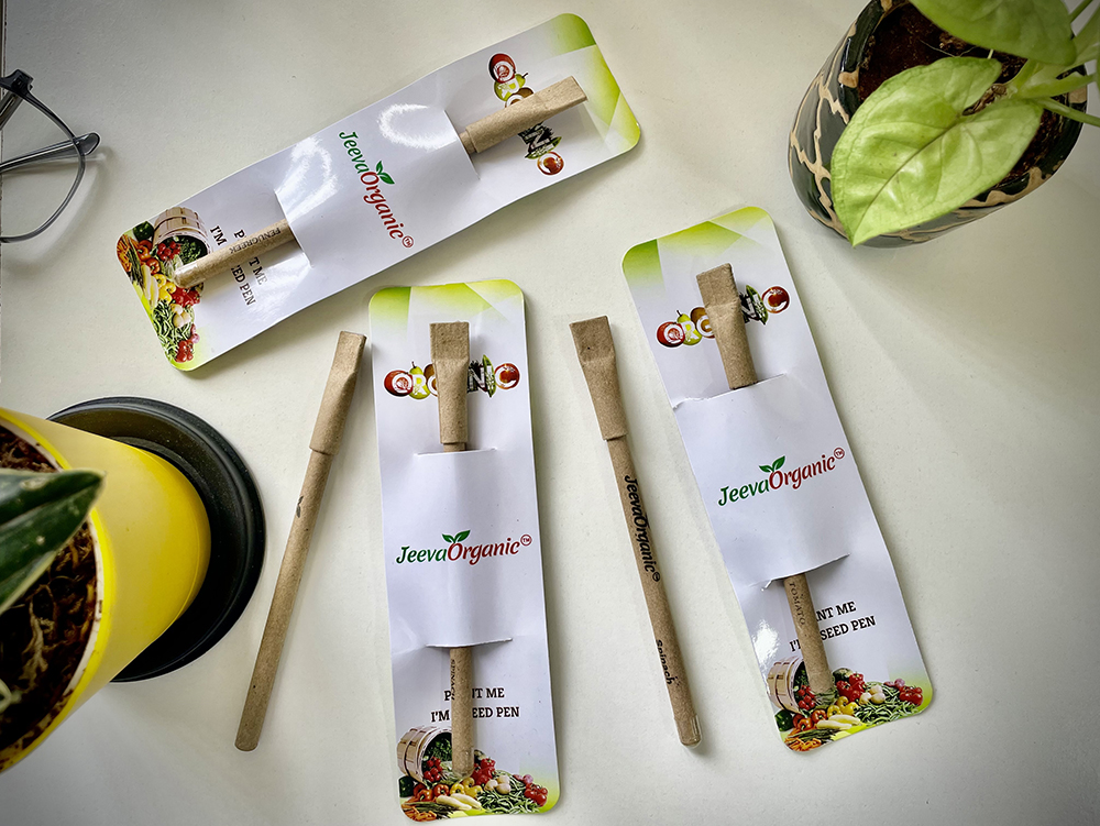 At Jeeva Organic , we’re cultivating a greener future through innovative eco-conscious initiatives. Introducing our sustainable seed pens – a simple yet powerful step towards reducing plastic waste and promoting environmental stewardship.